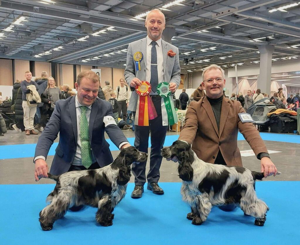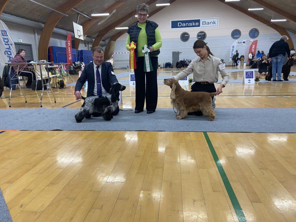 Majse is an amazing girl out of Pizza and Kalle. She is very much a cocker in both outline and attitude. Majse is as much a couch potato as she is a show dog. She has already done more than we could ever imagine as just 10 months old – January 2025 she has won 3 Best of breed under tree breed specialists at a big international show (62 entered) and specialty shows. Also becoming 4 x BEST IN SHOW JUNIOR.